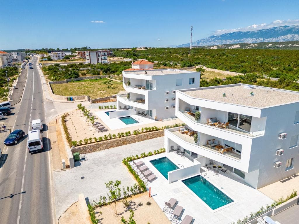 De onlangs gebouwde Villa Twins bevinden zich in Novalja en zijn uitgerust met moderne faciliteiten en een zwembad.